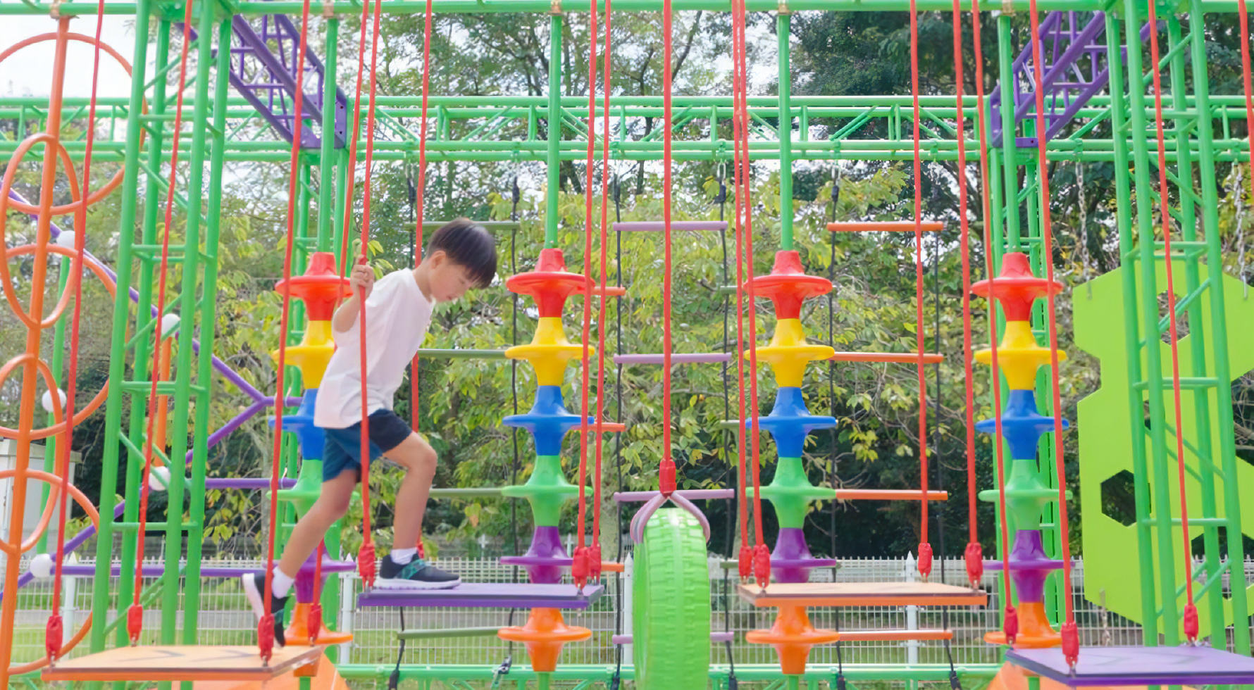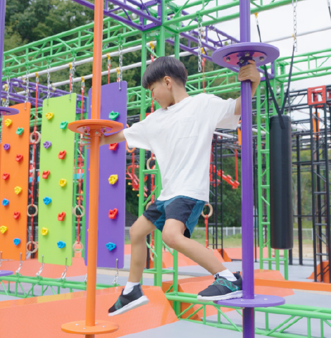 フィールドアスレチック内の遊具は、順番をきちんと守ってトライして下さい。