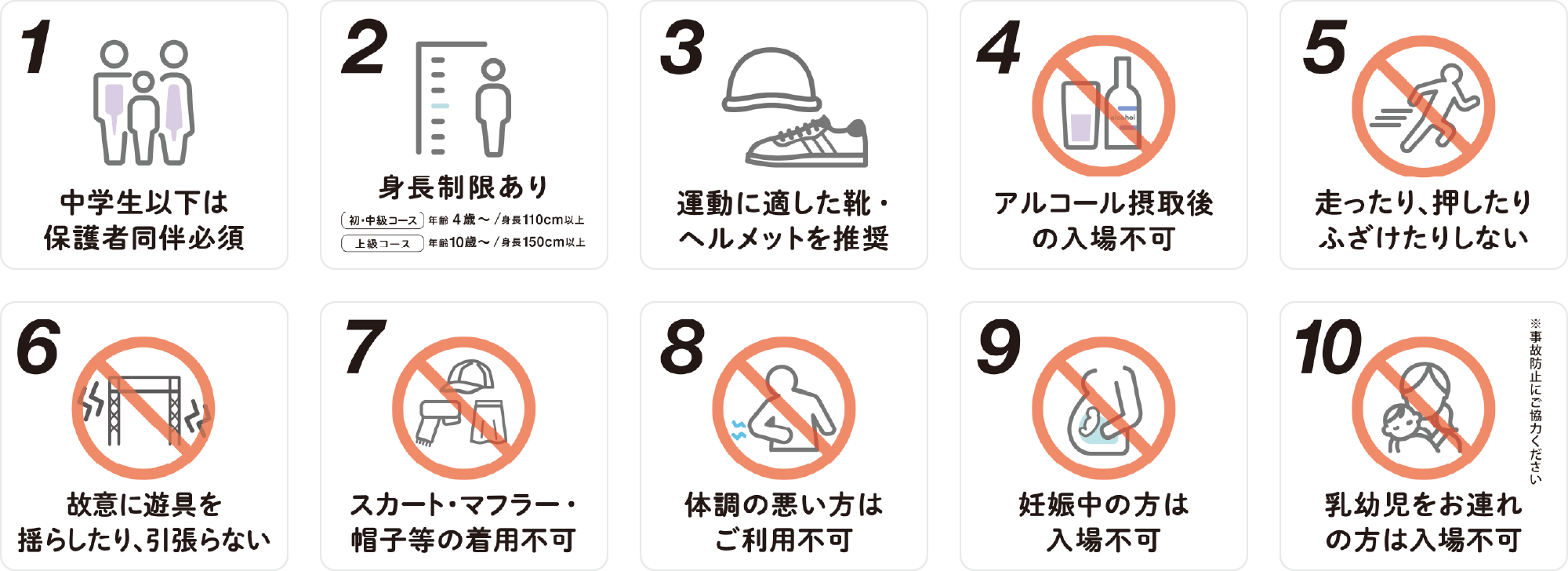 走らない・押さない・飛び降りない など基本ルールをお守りください。